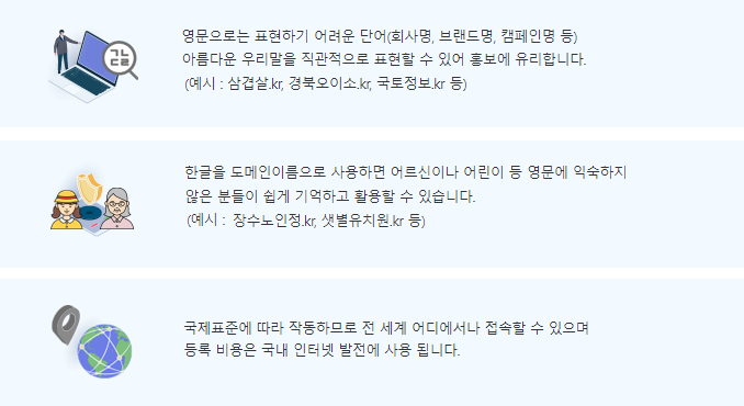 - 한글과 숫자, 영문자 혼용 가능(예시 : 가나다 123.kr)