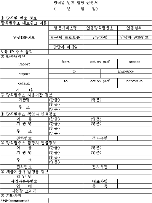 제4조 (할당조건) 인터넷상에서 독립적인 네트워크를 구축할 수 있는 설비를 갖추고 있는 자는 망식별 번호를 할당받을 수 있다.