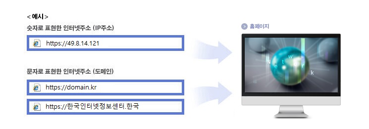도메인은 인터넷에 연결된 컴퓨터를 사람이 쉽게 기억하고 입력할 수 있도록 문자(영문, 한글 등)로 만든 인터넷주소입니다.